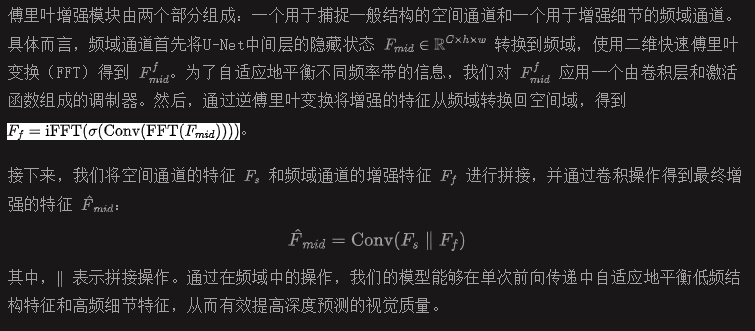 单步范式通过避免多步迭代过程和多次运行集成,有效地加速了推理过程。然而,扩散模型输出的细粒度特征通常来自于迭代细化过程。因此,单步模型在处理时会出现模糊的预测(如图1所示)。为了缓解这一问题,我们提出了傅里叶增强模块,在频域中进行操作,以增强高频细节,从而有效模拟多步去噪过程中的学习。