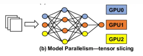 在张量并行方面,我们将模型的每一层分割到不同的GPU上。单个用户请求将跨多个GPU共享,每个请求的GPU计算结果通过GPU到GPU的网络重新组合。