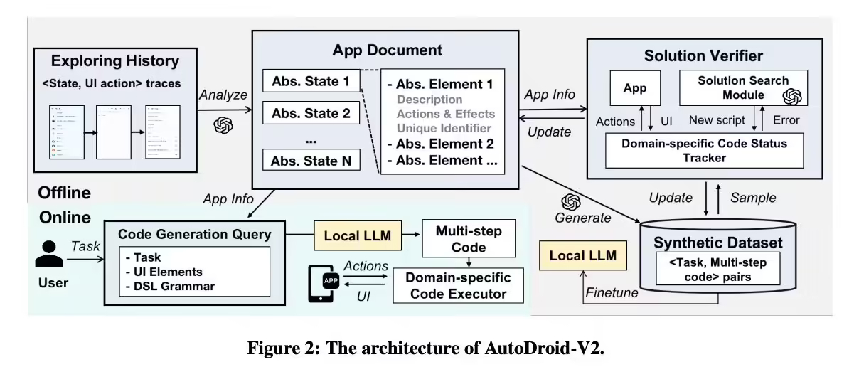该系统采用基于脚本的方法,利用设备端小型语言模型(SLM)的编码能力,高效执行用户指令。相比依赖云端大型语言模型(LLM)的传统方法,AutoDroid-V2 在效率、隐私和安全性方面均有显著优势。