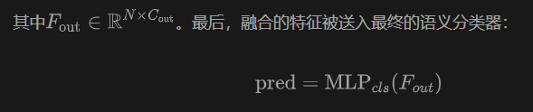 对于最终的语义预测,由于本方法的目标是为场景中的每个点提供语义预测,因此需要获取每个点在投影空间中用于类别预测的特征。对于从不同分支提取了特征,以前方法中的常见做法是通过网格采样(GS)操作检索每个点的相应特征。然后从不同分支采样的特征被融合。最后,融合的特征用于获得最终的语义预测结果。以前的基于点的输出融合可以表示为(这里作者假设使用连接操作进行融合):