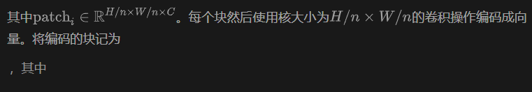 由于注意力机制缺乏区分输入序列中位置信息的能力,作者引入了正弦位置编码PE到特征中。最终的块嵌入输入自注意力可以表示为: